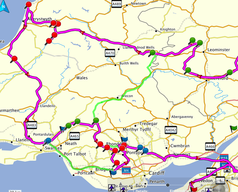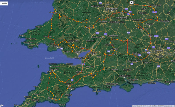 In Exeter it was clear that I wouldn’t get to the hotel before 3.a.m., so I asked in a Travelodge motel for a room. Fully booked. I checked the booking.com website: In Exeter, 100% booked. OK, let’s continue. I bagged many points near Yeovil, but the fog was very nasty. Finally, I arrived at the hotel at 4:30 and spent my 4 hour rest break there. After a refreshing 2 hour sleep, I had a quick breakfast and continued my ride. I knew that my initial plan to go to Yorkshire was impossible, but I wanted to continue it as far as possible.