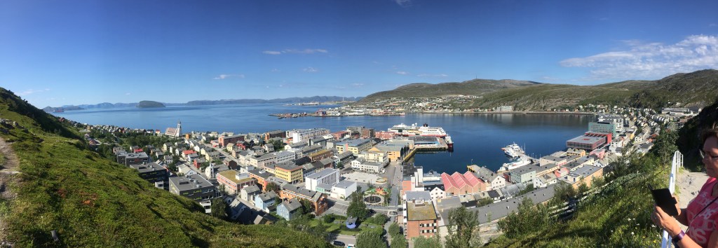 This morning, we made a short excursion in Hammerfest. Instead of joining other boat people, we went on our own and walked up to a viewing point, overlooking the bay.
