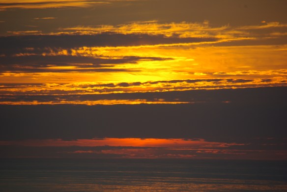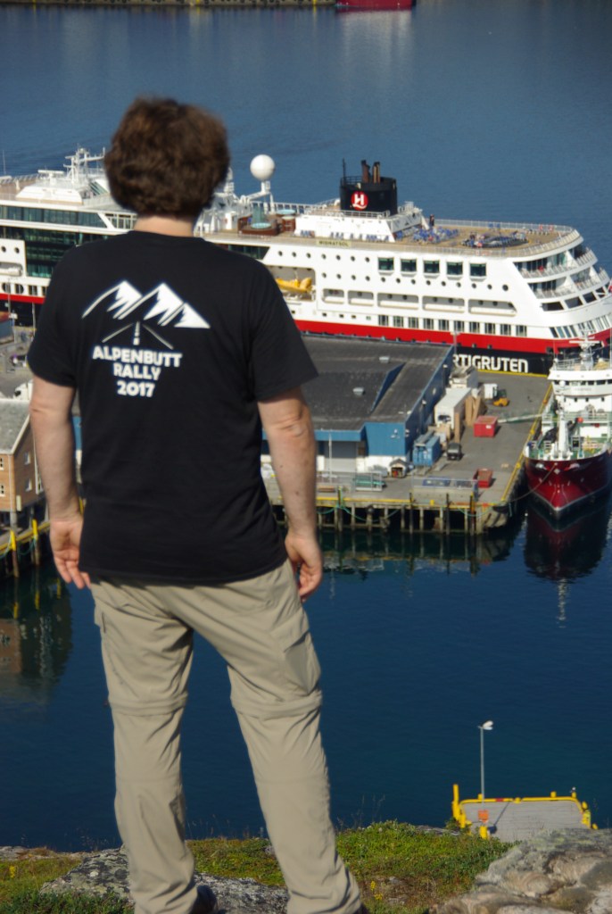 I had hoped to see the midnight sun and was already disappointed that despite the good weather, there were a lot of clouds on the horizon. When I arrived 25 years ago at the Nordkapp with my little Honda XBR500 after a long trip, some clouds impaired the unobstructed view of the midnight sun. Nevertheless, I went on deck at a quarter to midnight.