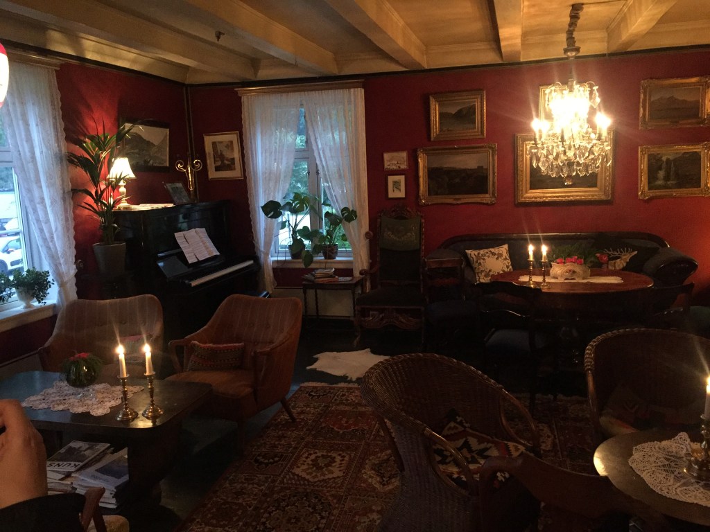 We had an aperitif on the veranda before we had our dinner in the nostalgic dining hall, very much in a traditional Scandinavian style. This is a bit like time travelling.