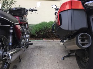 In April, I received an Emergency call from John Young from Holland: his Triumph Explorer had a problem and he feared he wouldn’t make it home. Without a second of hesitation, I wanted to help him to get back home. Hmmmm….this wasn’t easy…the BMW was at the dealer for a service, the Pan was still not running properly on all four cylinders after the IBR17, the black XBR had a small problem I can’t remember, soooo…..this is an example why you need more than one bike! In the end, the newly re-built cafe racer XBR was the only bike at hand….but it took John to his home place where he took his van and returned to pick up his bike.