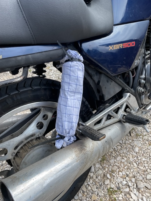 But before that it was time for another XBR Alpentour! I had equipped the grey XBR with the correct, custom made sprockets and now the system seemed stable. I went to meet Gernot in Karlsruhe and we rode together to the meeting point in Reutte, Tyrol. During the trip, I had to turn the bike as we had to turn around. In that moment, as it seemed retrospectively, my tank bag touched the starter button while the motor was running. The starter came on and would not stop! Even if I removed the keys! Panic! I tried all kind of things…The starter would not stop!! Sooner or later it would get fried! Frantically, I ripped the luggage from the bike, searched for my tools, removed the seat and tried to disconnect the battery while the starter was turning the motor hysterically😱😱😱. As I was in panic, the unscrewing did not happen without some flying sparks (in my panic, I tried to remove the positive and not the negative terminal 🙄). Finally, there was silence. What had happened? Well, pushing the button had pushed the starter relay that got stuck and did not get released. As the starter is connected to clamp 30 (permanent positive), a hanging relay results in a permanent current that cannot be switched off by the ignition key. I knocked on the relay and connected the positive terminal again. Silence. I pressed the starter button. Worked without problems. Everything ok again. It’s a Honda.