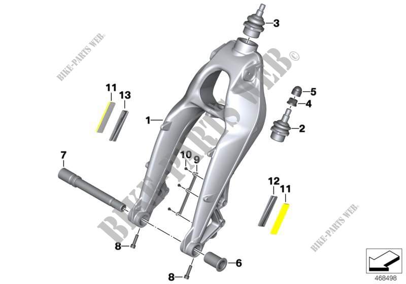 My BMW was ready and I picked it up from the dealer; When I arrived at home, I was not happy. There was still some rumbling noise! I grabbed the front wheel with both hands…really? The wheel had some longitudinal play! Aaargh! The bike went back to the dealer, changing the ball joint (no.2 in picture).