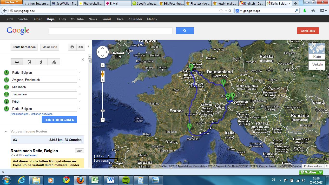 Tomorrow it’s time for another test ride through Europe. As I will have 72 hrs to the Ride to Eat meet in Brest on Saturday, why not trying a Saddle Sore 3000 (3000 mls in 72 hrs)? It is exactly the pace I’ll have to face in the Iron Butt Rally and it should be a good training of my endurance skills.