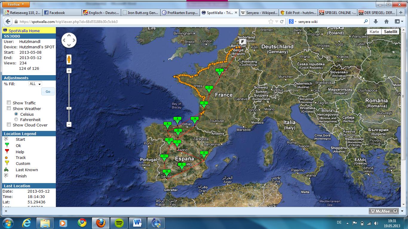 Another feature I am testing for the first time is the Spotwalla homepage: You can follow my test ride live here: