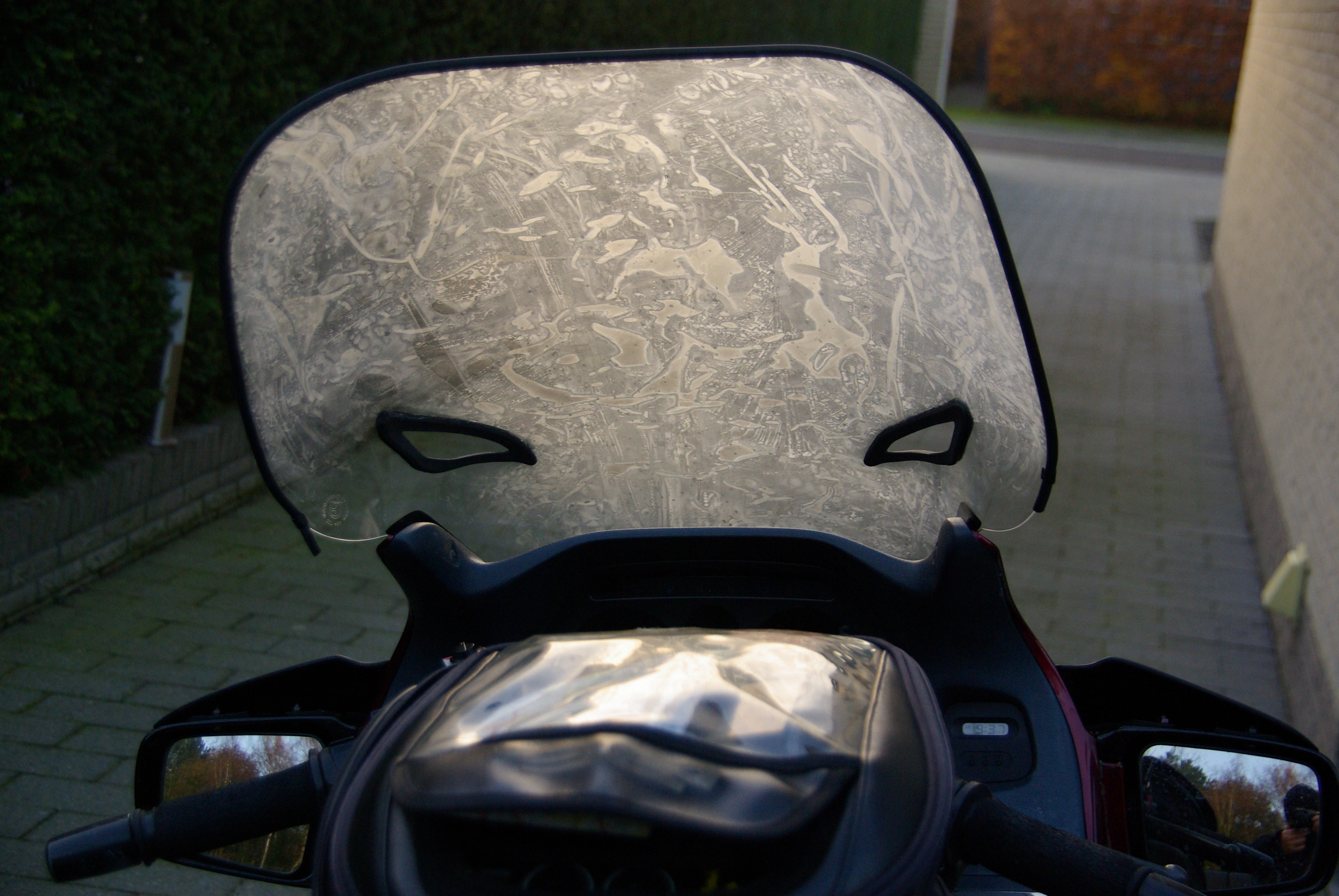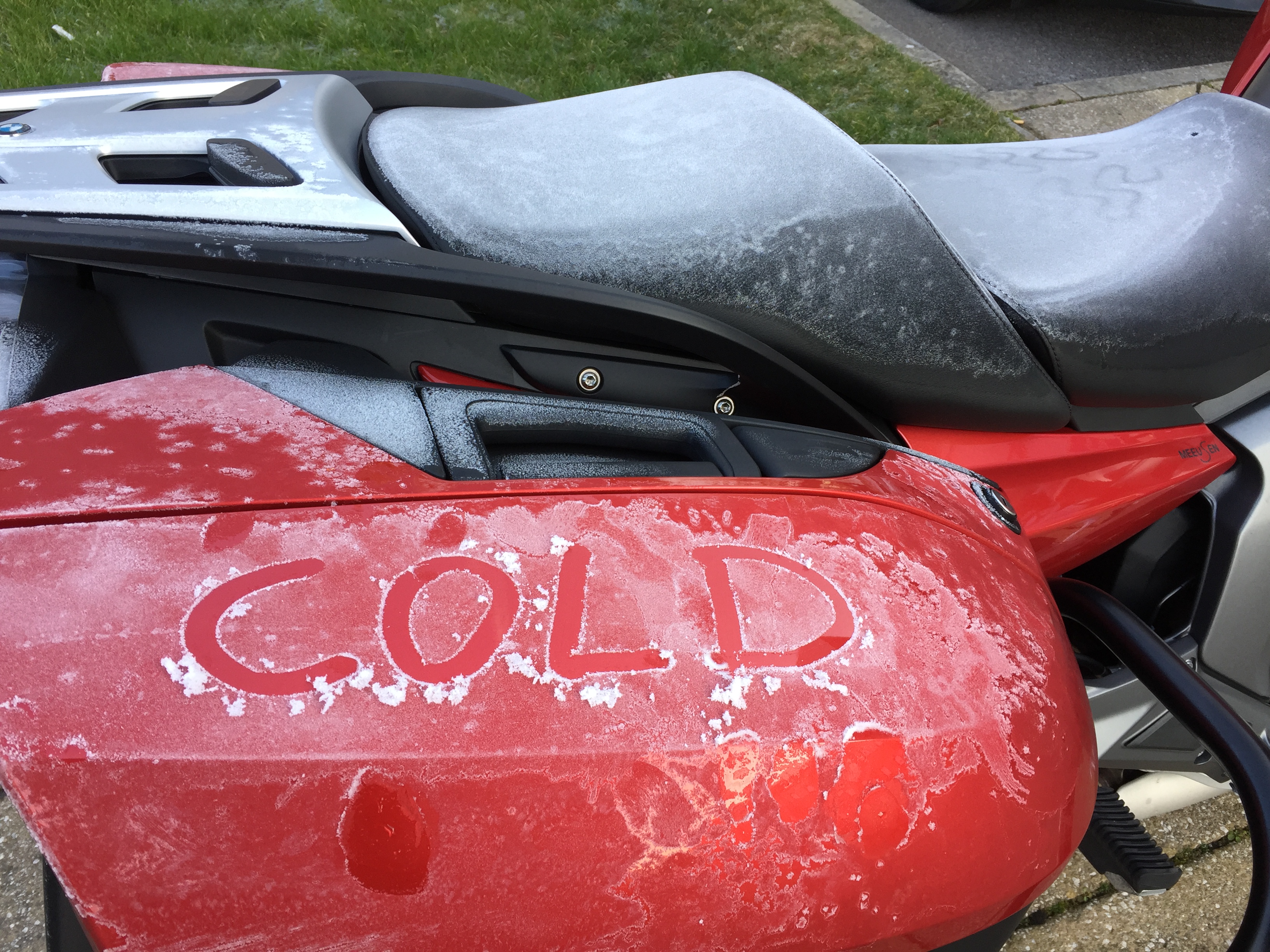 What has happened??? Well, I had decided to start the painting of the fairing. At the same time I needed to change back the bike to a normal state to pass the road test. It is only due in June, but I want to continue to change the bike to ‘rally mode’ and switching back later is too late. So I went to Germany today and passed the test without any problem. On the way back it was snowing! Chilly, chilly.