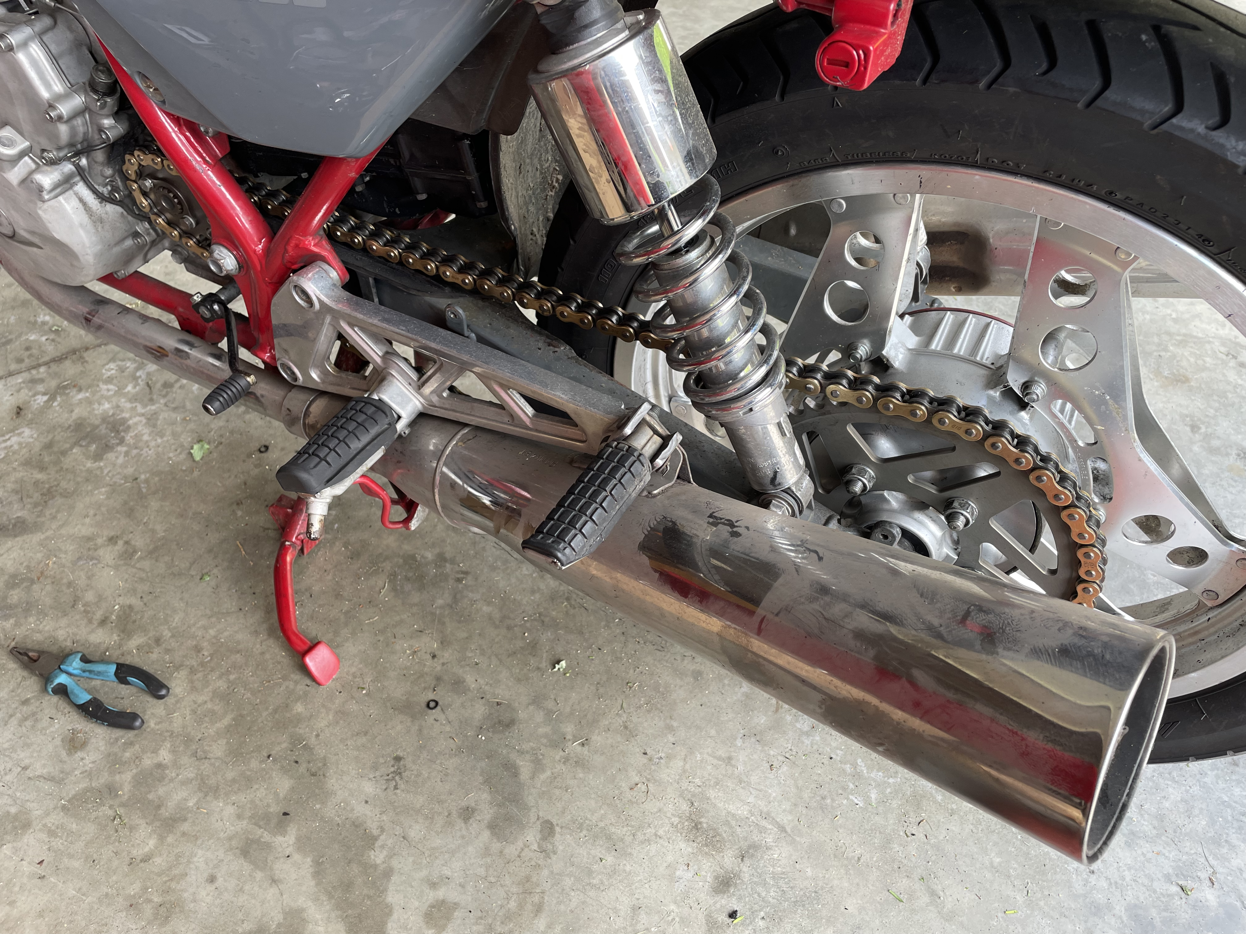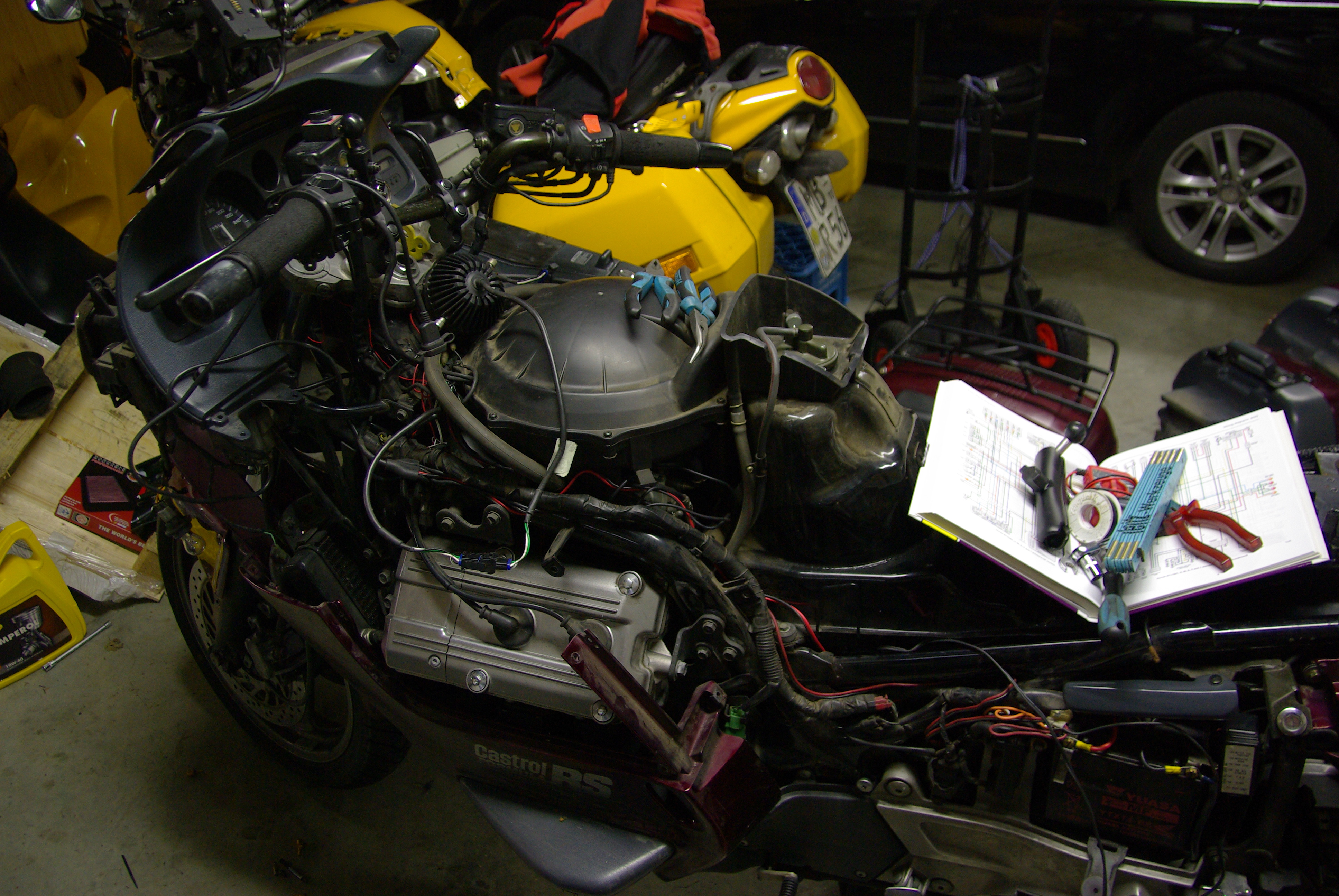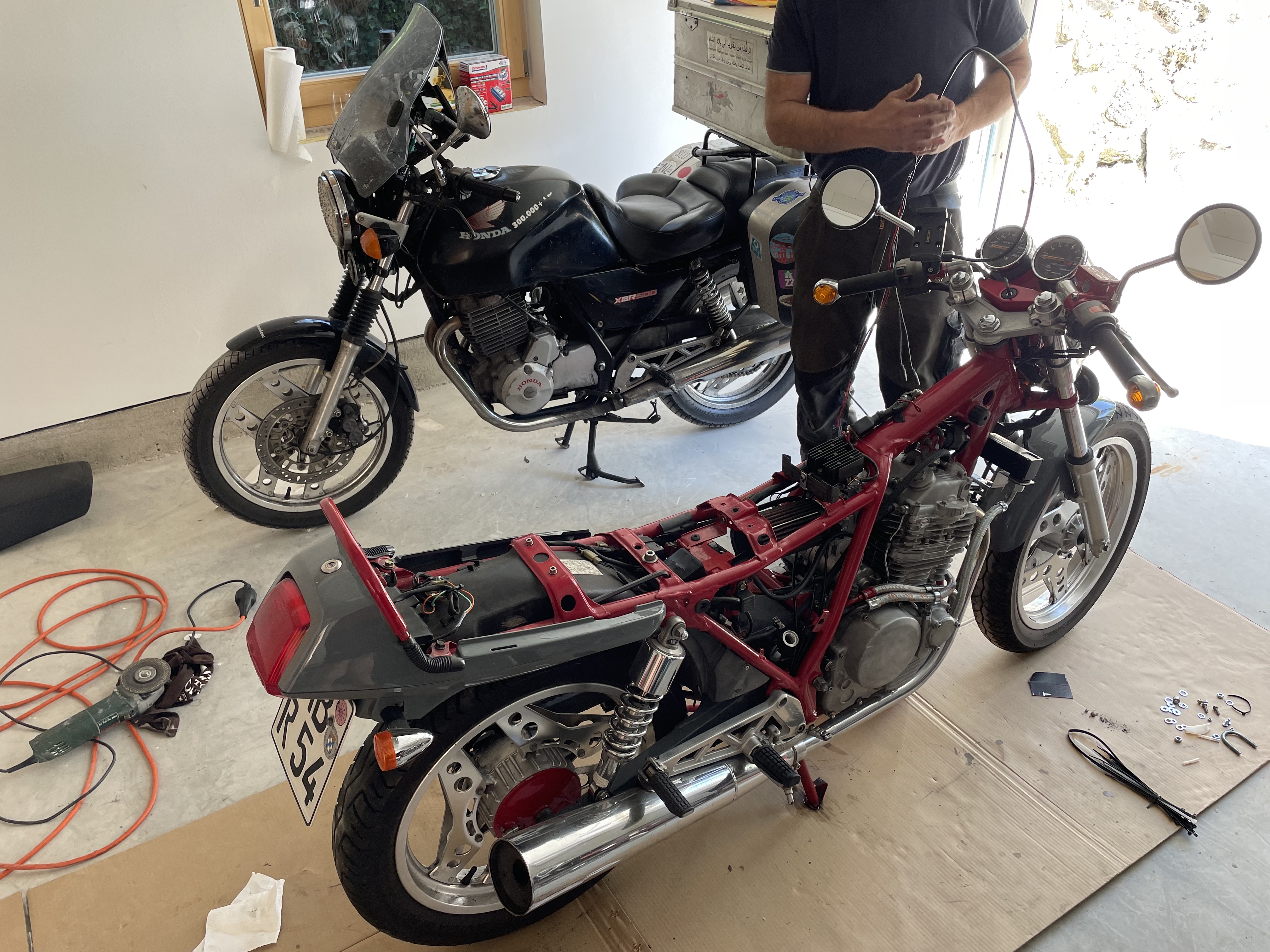 During another trip to my home town, I visited Mart!n who exchanged the clutch of the XBR despite the bunch of work he had because he tried to save a couple of motorbikes that had been drowned during the floodings in Bavaria. I had never before seen collector’s bikes that after opening the drain screw first spit out litres of water before any oil. Or those cylinders were completely filled with water. Thanks, Mart!n! No more slipping clutch below 60°C oil temperature.