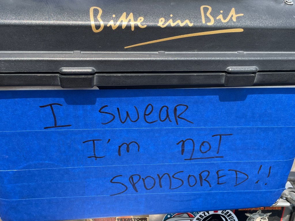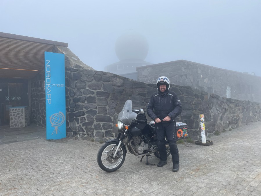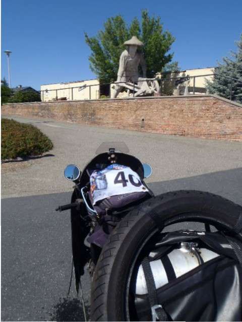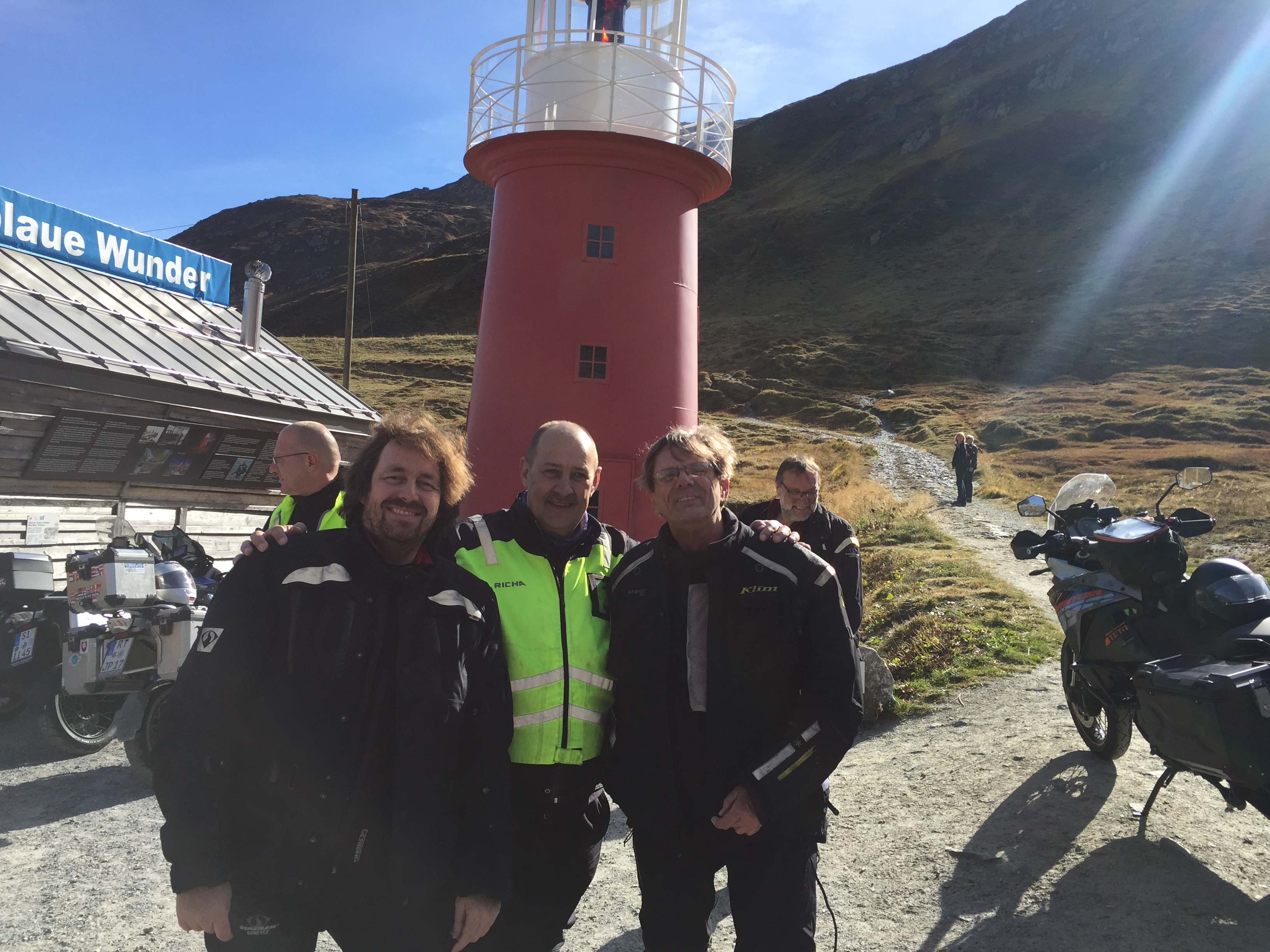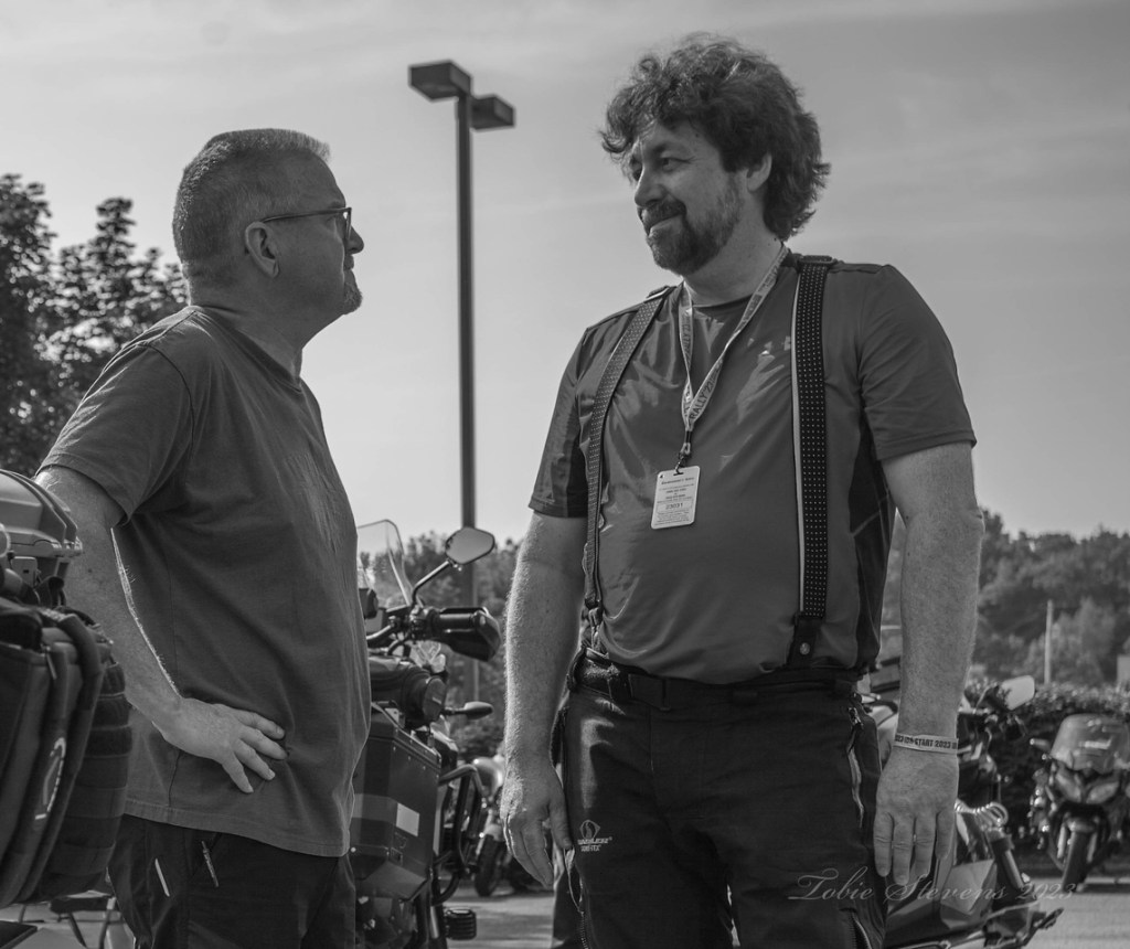 I met Rainer who was checking his picture and had a little chat. When I packed my flag back in my tank bag, a car stopped next to me and the following dialogue developed.