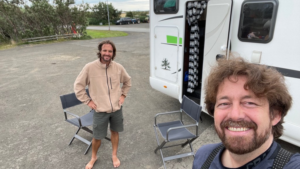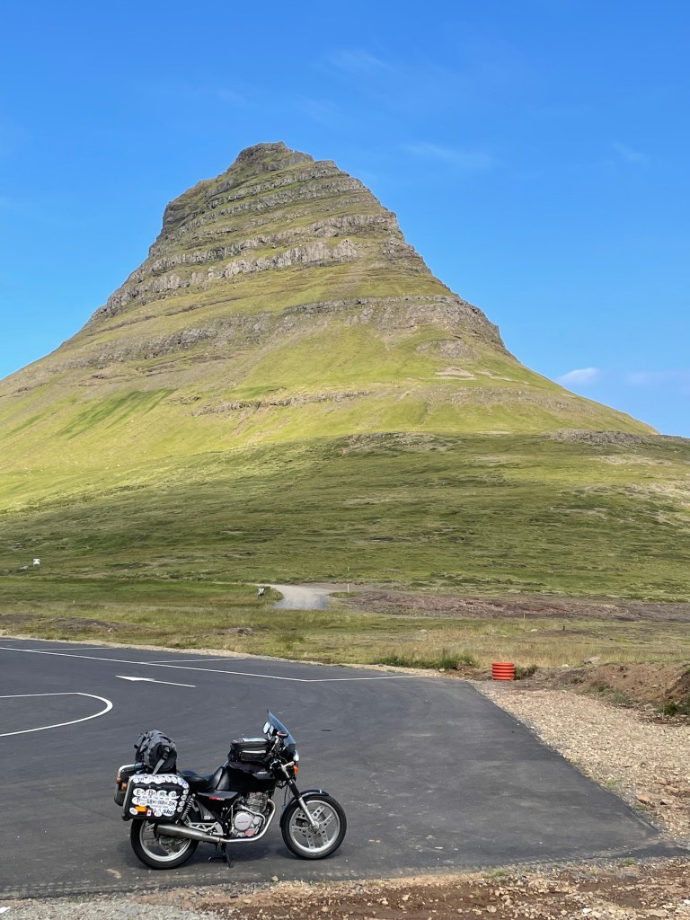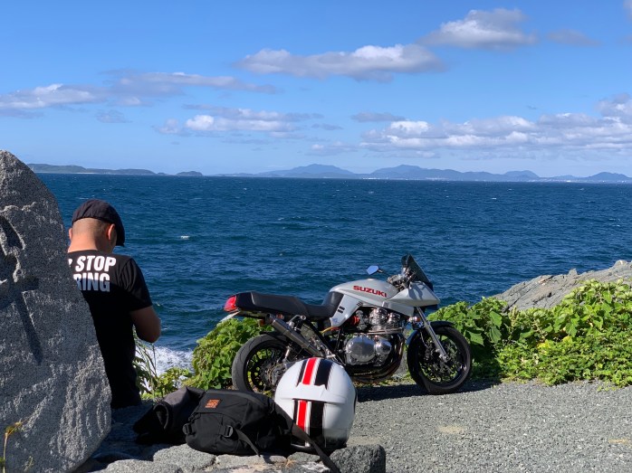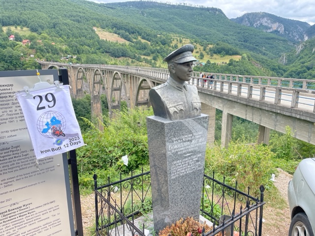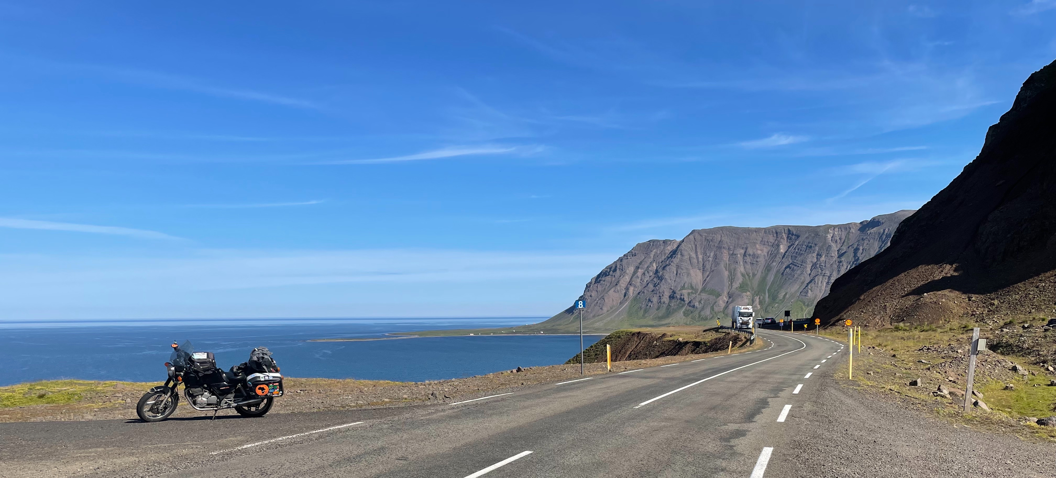 I met Rainer who was checking his picture and had a little chat. When I packed my flag back in my tank bag, a car stopped next to me and the following dialogue developed.