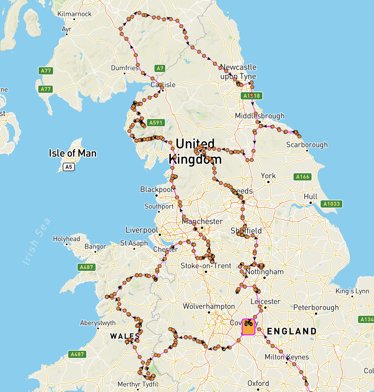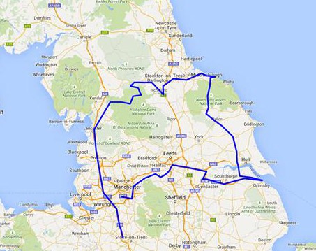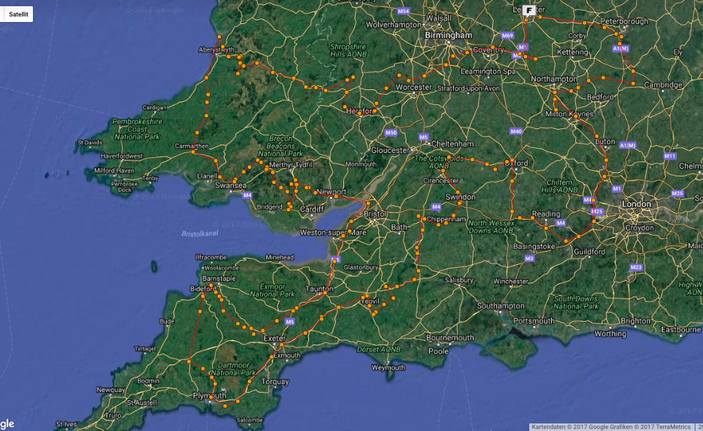 So I turned to the middle route. It seemed to be more of a low-risk option. Definitely not an epic monster ride. Even the Scottish route would be more demanding. The middle route left a lot of options, the idea was to stay in Newcastle for the rest break at night and mop up all the remaining points on the route back to Coventry. The ‘many options’ feature and the calculated high points value made it the route of choice. Nothing to be particularly exited about if you look for a challenge, but a solid ‘I-couldn’t-find-a-better-one’ route.