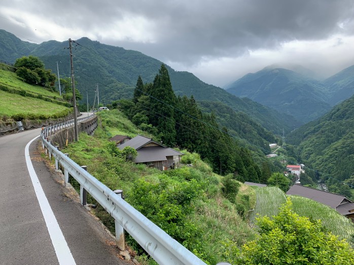 Down in the valley I visited another small train station and continued my ride towards the coast when finally the rain stopped and some rays of sunshine brightened the evening. But I could see another big rain front closing in over the sea. I realised that my next location required to ride back into the mountains to the end of a valley and my rain forecast predicted that the rain front would hit me right there. Gulp. Well, I did not want to give up this point and combo. Grit your teeth and do it!