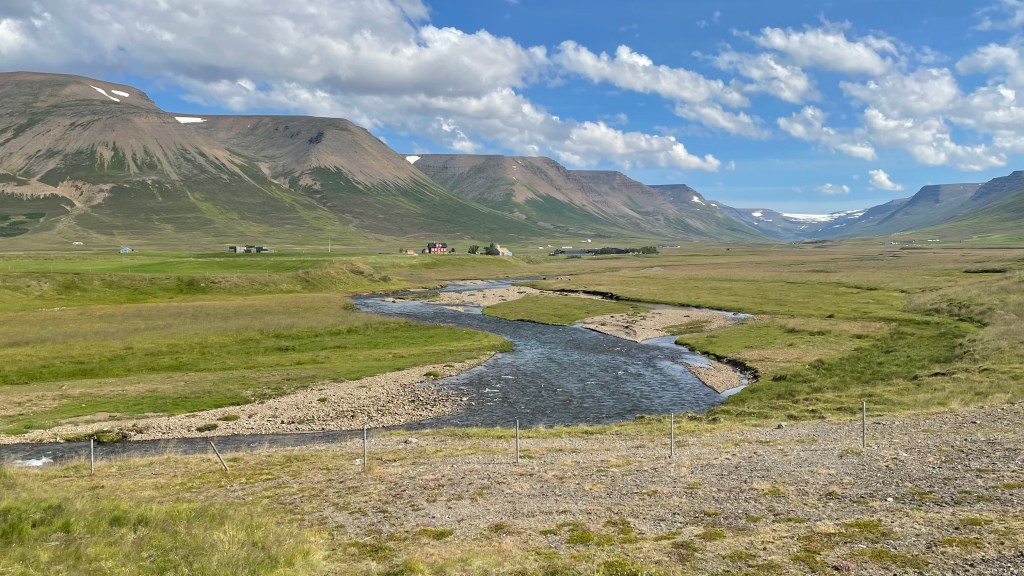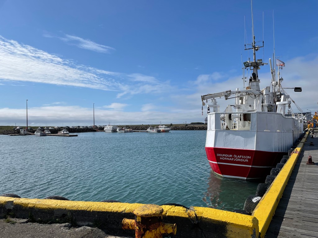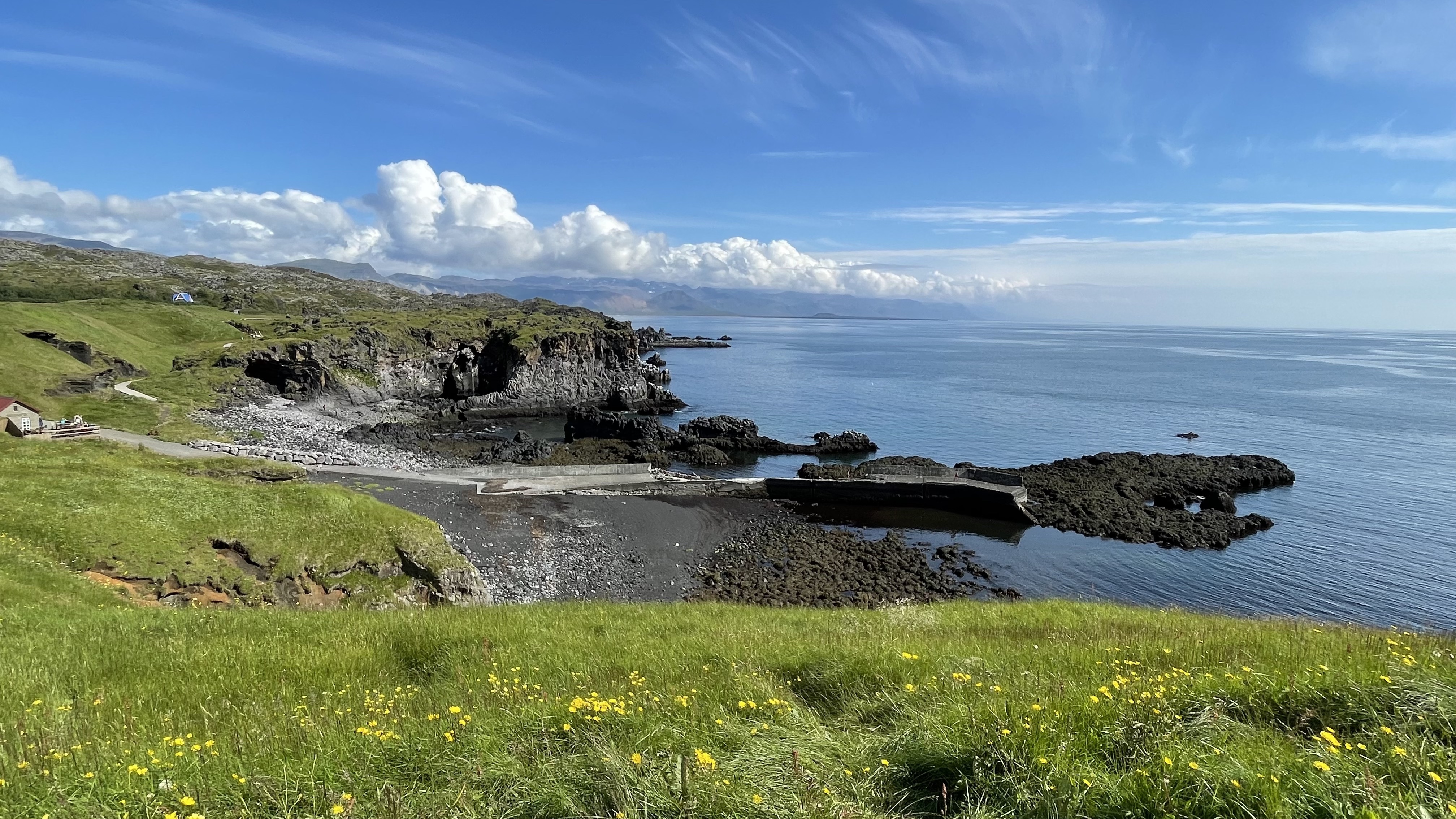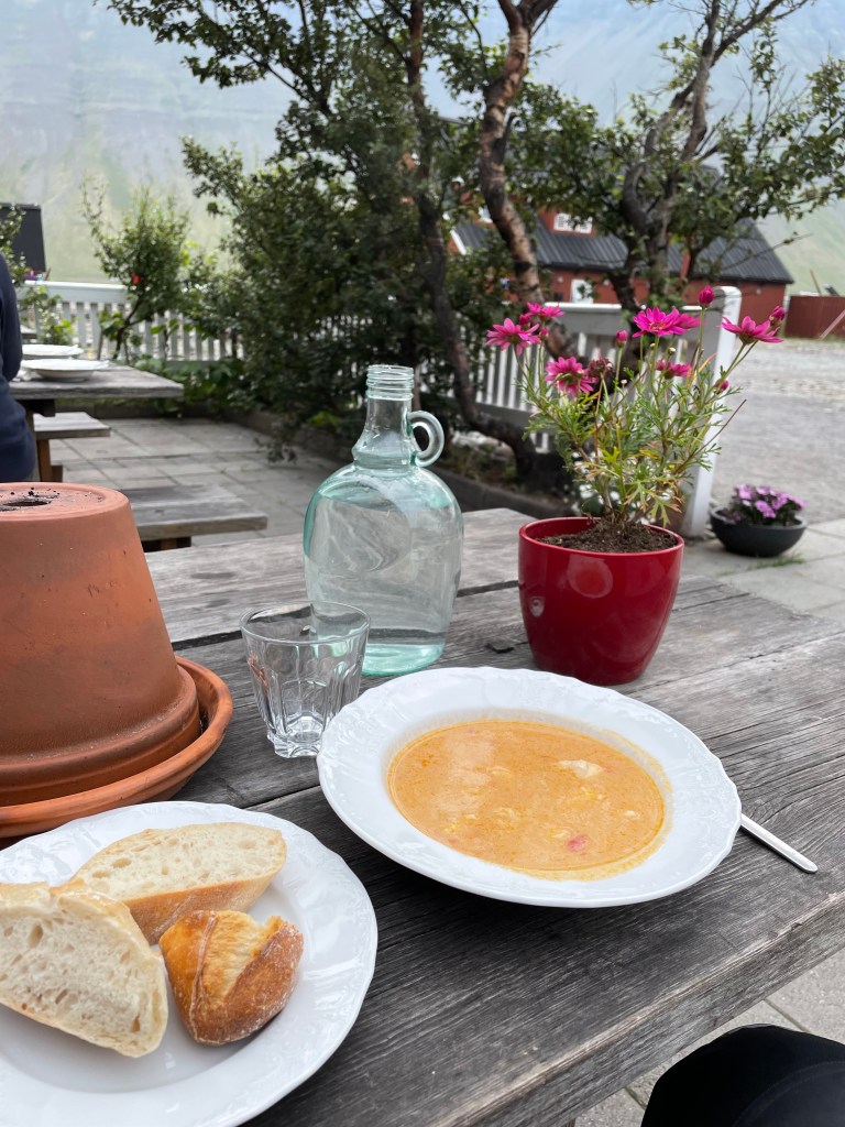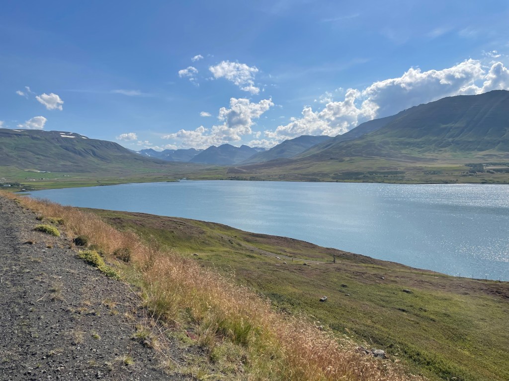 I turned around again and went back to the Cabot Trail main road. I reached the west coast which turned out to be very different from the eastern side. The temperature was lower and it was more windy. The aspect was more maritime as the eastern side is more protected. I stopped at a viewpoint that informed me that this was a large geological formation – the Aspy Fault, a large rift that separates the north of the National Park of Cape Breton. Down at the coast. I felt a bit peckish, but food places were rare. Finally I stopped at a souvenir shop, mainly because it said “biker friendly”. I browsed the merchandise and acquired a T-shirt of the Cabot Trail of an acceptable design. I also purchased my lunch, aka icecream.