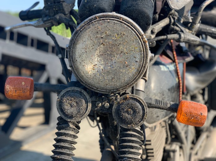 I had a presentiment during the Saddle Sore 3000…when I had lost the original fuel tap of the auxiliary tank, I bought a temporary fuel tap made of plastic. Every time I removed the tap, small chunks of plastic were cut off from the fins of the tap and fell into the tank. When I saw this, I thought that this would give me problems later….As a precaution, I had installed a fuel filter that should prevent that these chips would reach the carburator. So far so good.