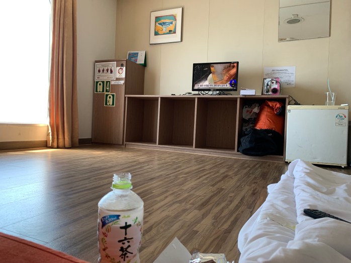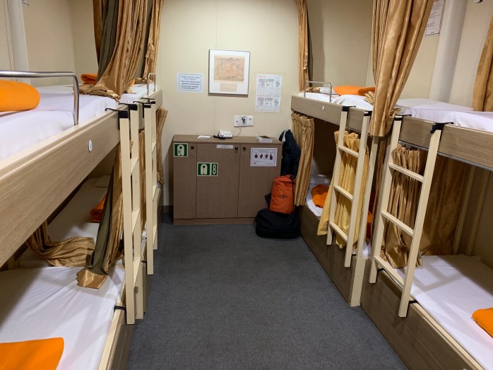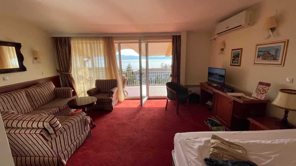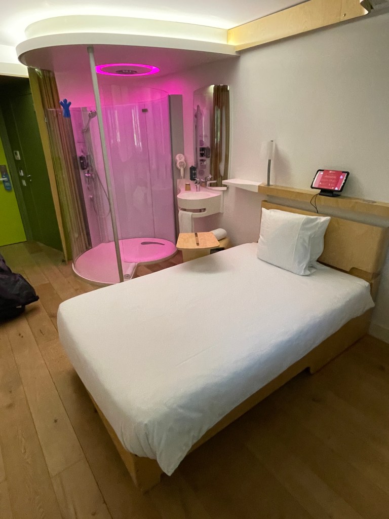 Shortly before 2 a.m., I rode up the driveway of the Hilton and left the BMW in front of the revolving door. The check-in was quick, but I still had to park the bike in the underground parking garage. Definitively a secure place. When I entered the ‘room’, I encountered this: