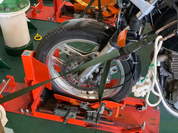 So it was time to go for a first real long test ride. I had done some minor modifications, trying to fix problems and to do some maintenance. I changed the brake fluid and installed a new chain with new sprockets. The Dispatch 1 gave me same problems – the iPad and the smartphone wouldn’t charge! After a discussion with the manufacturer it turned out that the USB connections supported the USB standard, i.e. 5 V at 0.5 A. However, the iPad requires a 2 A current. So, I had to find another solution: I connected a 2 A USB socket to a 12 V output (normally used for heated garments) – and it works! So this is solved. I had another problem with the new Zumo 350: the cradle wouldn’t work, so I had to change it for a new one – but it didn’t work either.