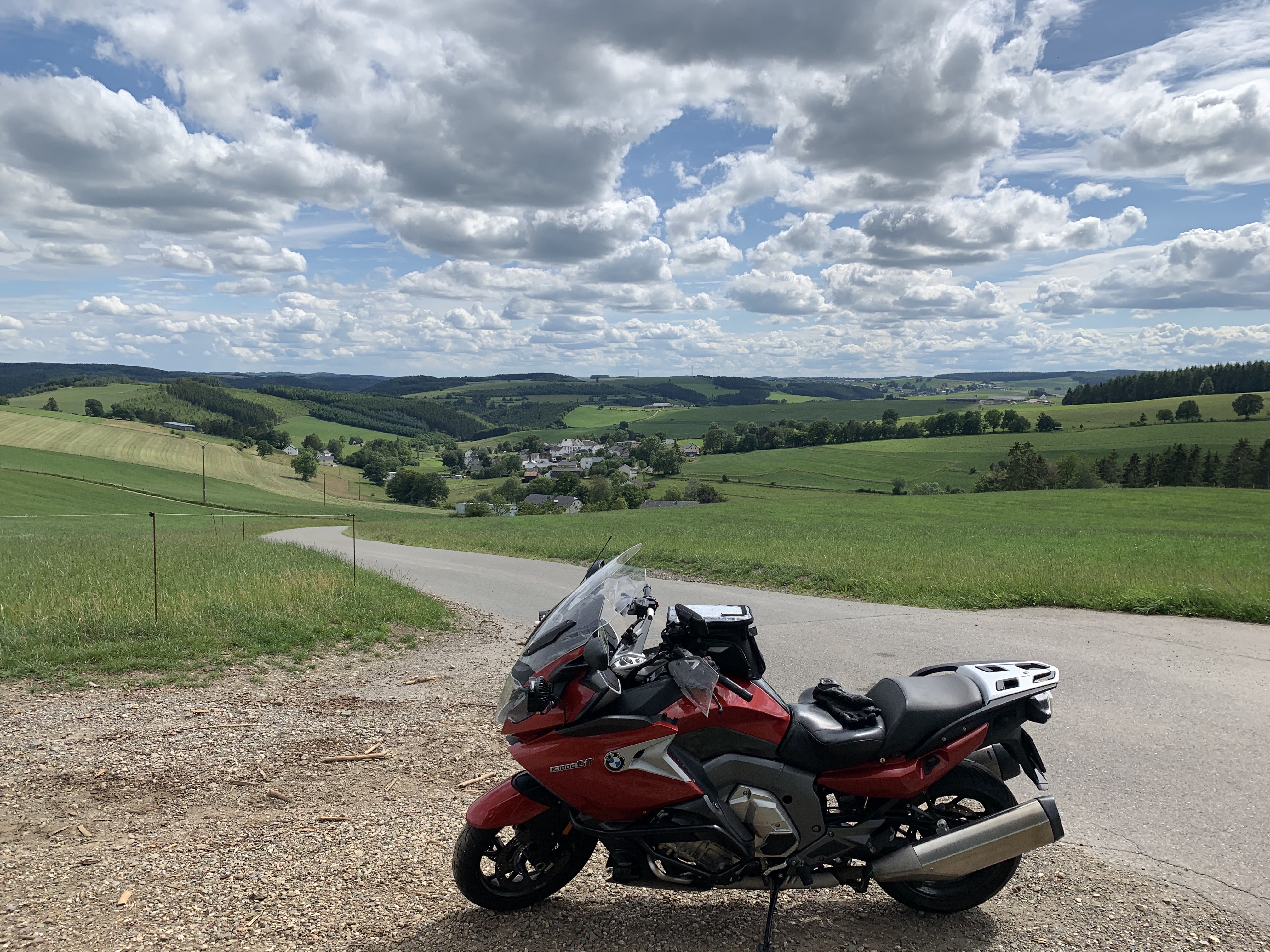 I discovered the reason for the vibrations: I had lost a screw that secures the front axle. Ooops. The next day I went north to Belgium, not without visiting Johannes in Fürth, I had to show him the Naughty Little Rascal in personam. The XBR enjoyed the German Autobahn and I went again at 150 km/h, once I even banged at 170 km/h (105 mph). This would be enough to end up in a county jail in the US.