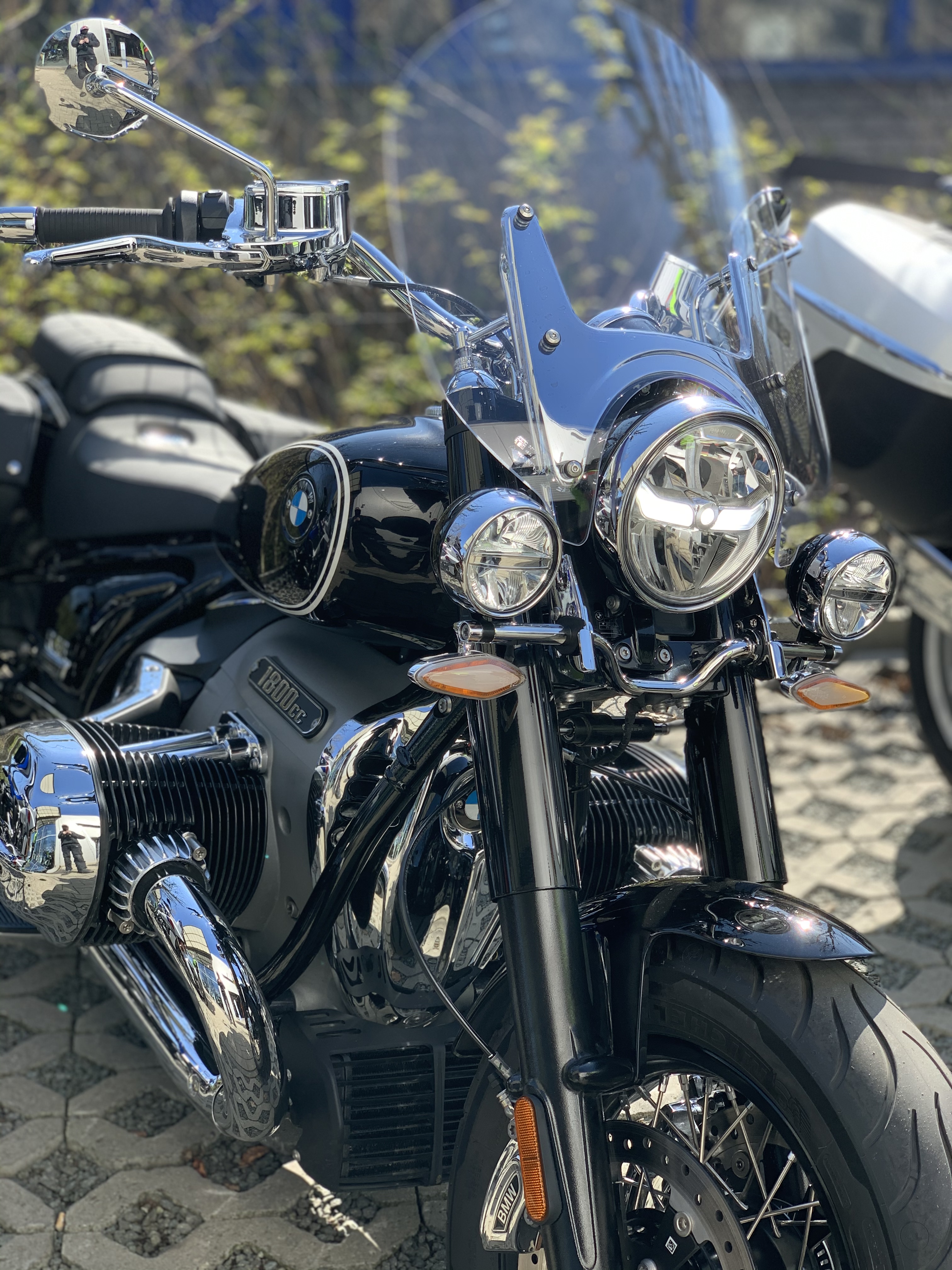 Riding in a slow group was painful, I could only rev it up to 50 % nominal-speed range. But this was enough for about 100 hp and quite impressive, long before the real music kicks in. The riding position was surprisingly relaxed, not riding on a razor’s edge as expected. But even with ‘the hand break on’, the traction control light in the dashboard was flickering like a disco light. Flabbergasting. Would be interesting to ride it properly.