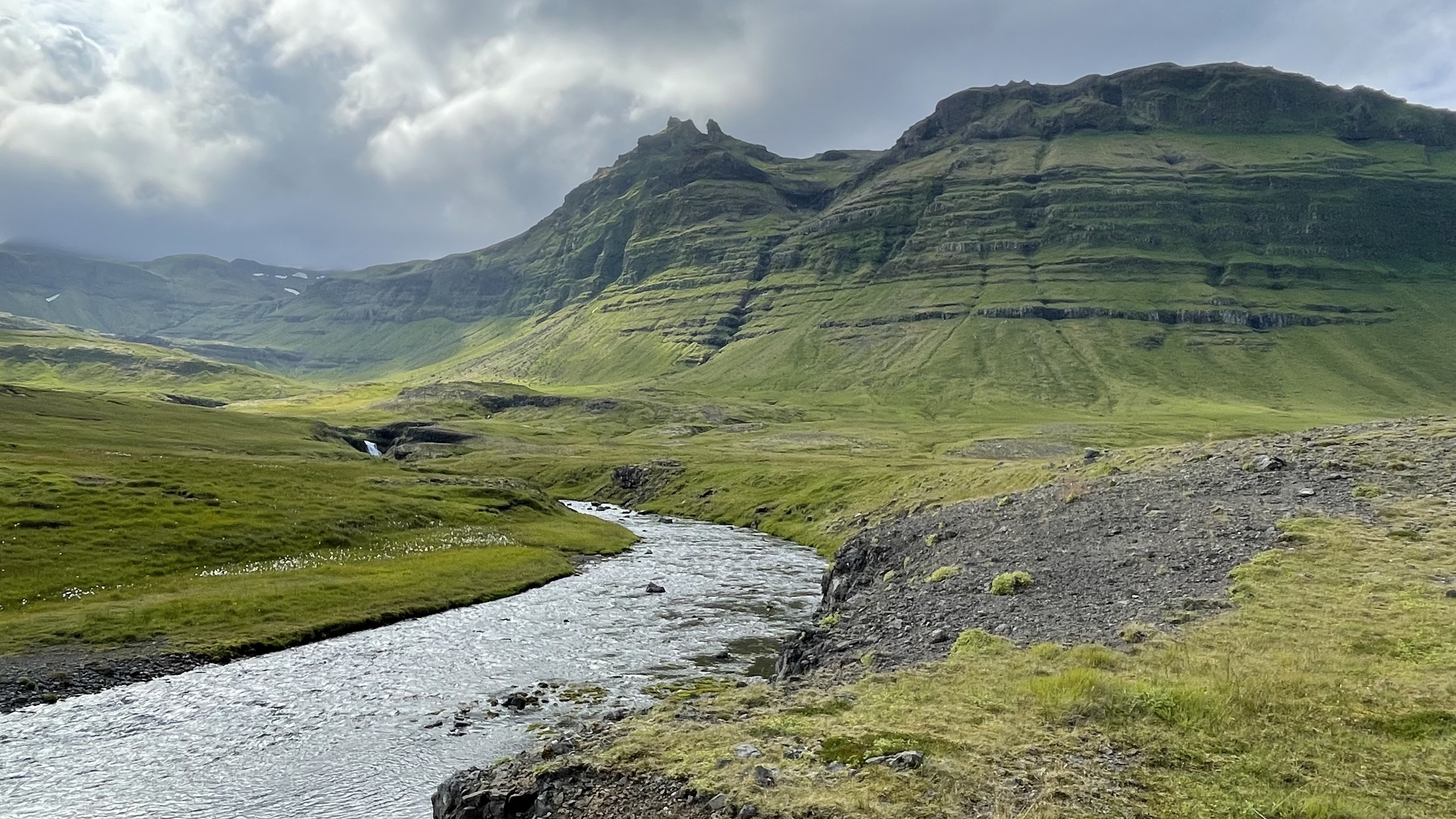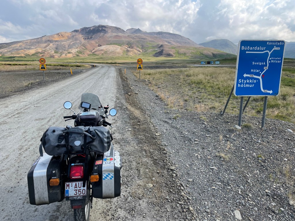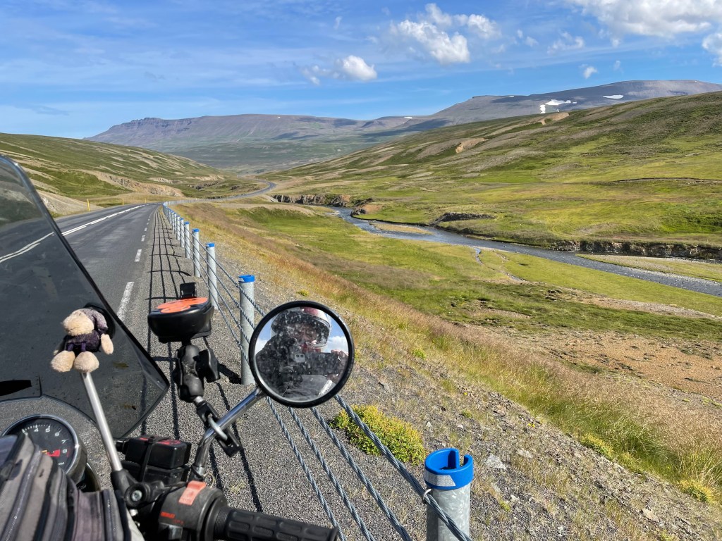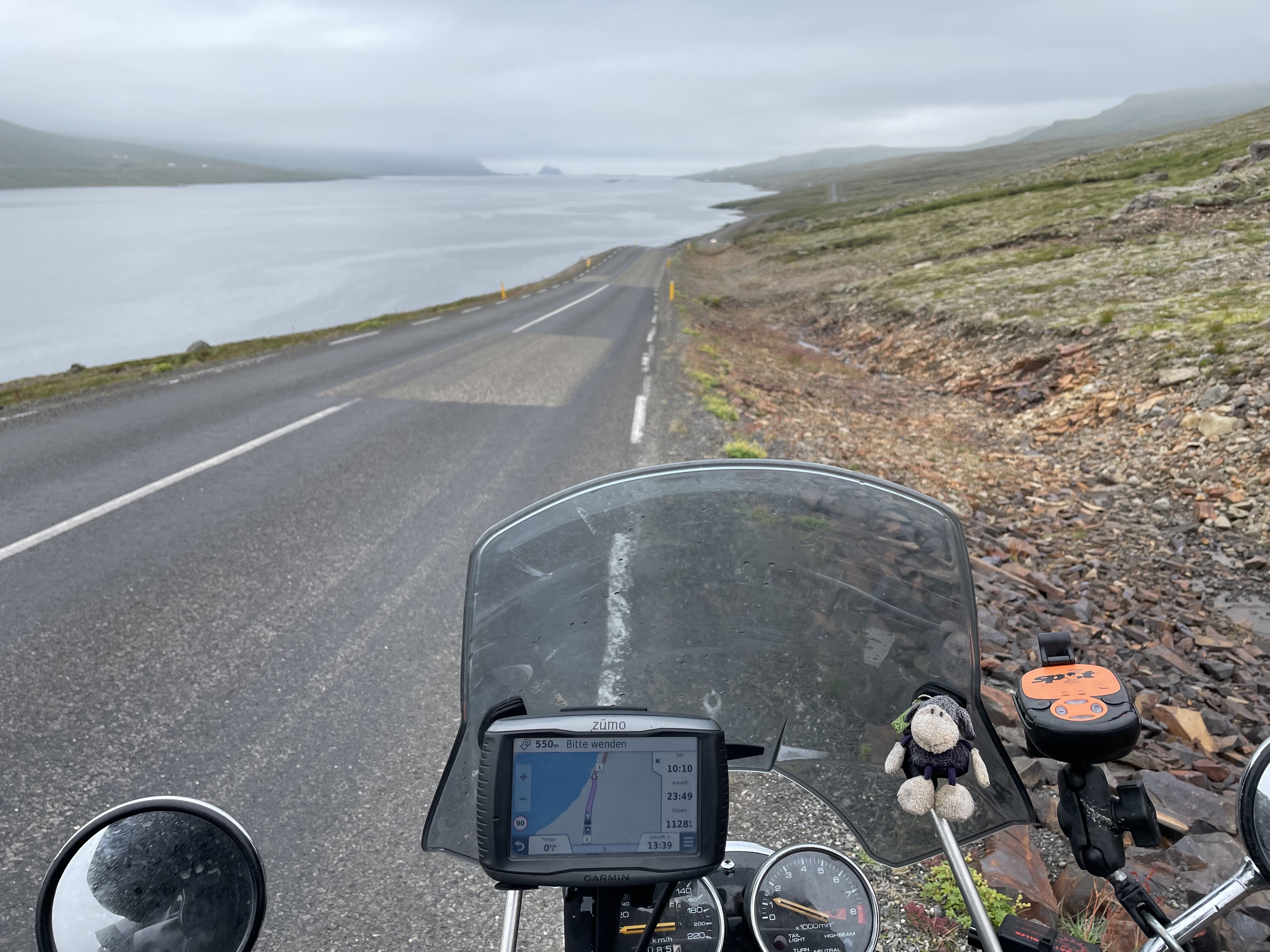 Slowly the temperature rose and there were more sunny spells. I remembered that I hadn’t switched on my GPS tracking app and corrected that. During this trip I relied solely on my mobile phone that I charged continuously with a power bank stored away in a fairing box, safely protected by some fresh underwear.