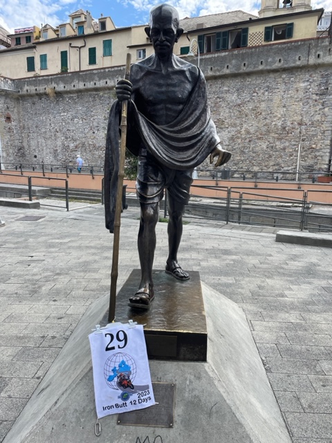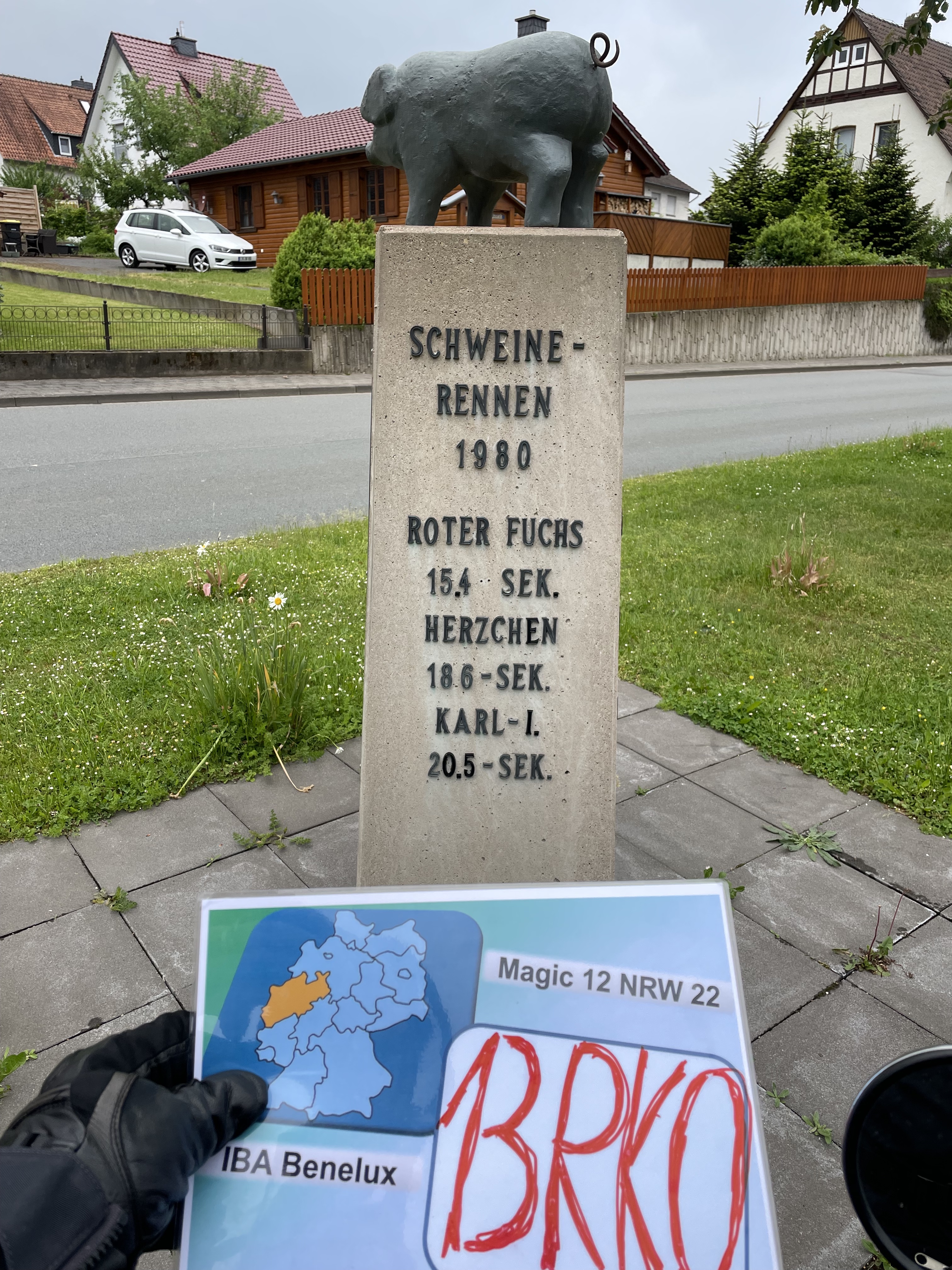 My next stop after a Victoria column in the Dales was a ‘football’ street sign’ and after that I rode to the centre of Leeds where I had to take a picture of a golden owl on a column. Easy, another triple of a combo bagged. I noticed that someone had forgotten his rally flag (rider 08) as it was lying at the bottom of the column. As tempting as it might be, IBA state clearly that flags of other riders need to be untouched. A mistake a participant made during the IBR23. Being told off in a rider meeting in front of all riders at the checkpoint is not what you want. So – hands off from other rally flags!