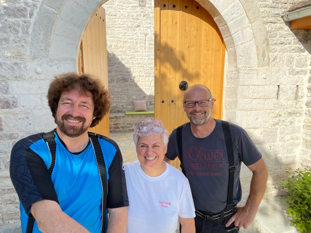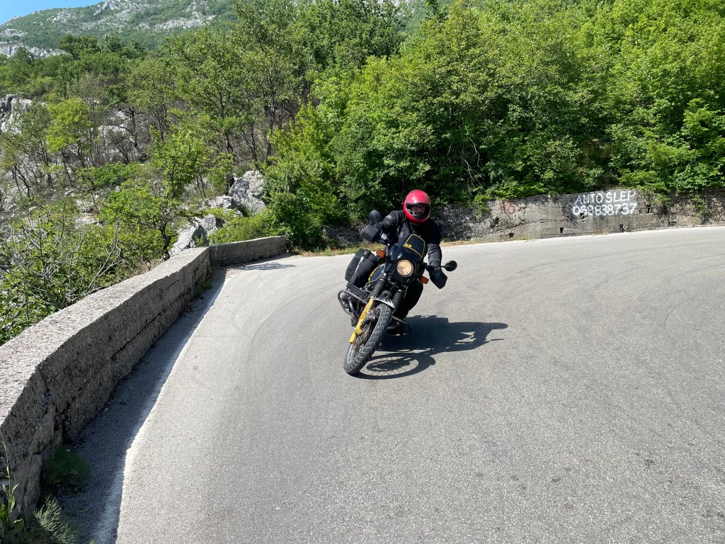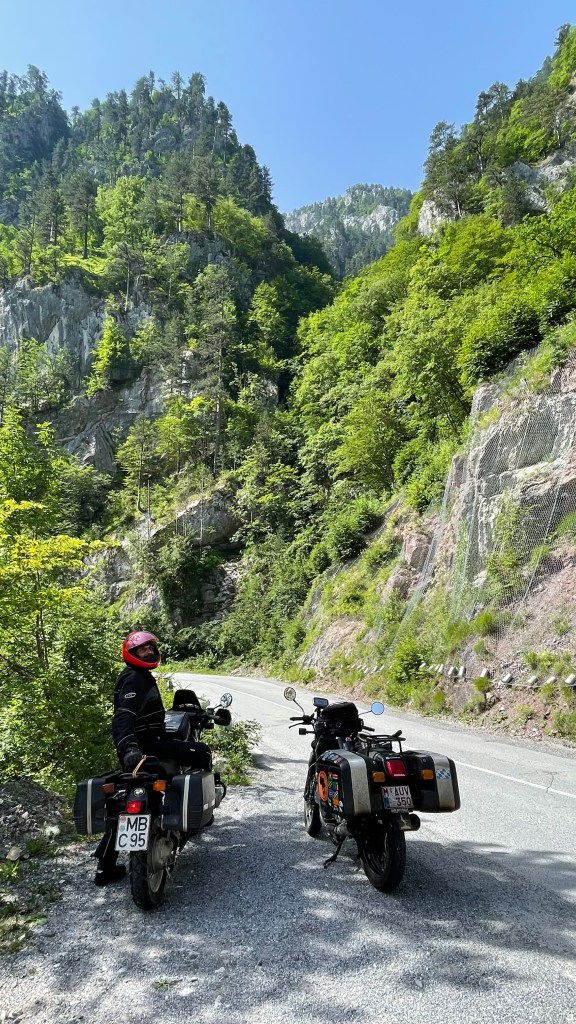 It was not easy to heave a 350 kg motorbike up this road, but I made it. However, when I descended on the other side, the thunderstorm broke loose. I mean, torrential rain. Apart from the narrow, steep bends, I had to deal with a flash flood on the road. Carefully, very carefully I maneuvered the bike downhill, this seemed to take forever. This was an excellent test for my new Stadler gear and it passed the test with flying colours. I stayed dry during the whole trip! Well, that’s what you’d expect when you’ve spent tons of money.