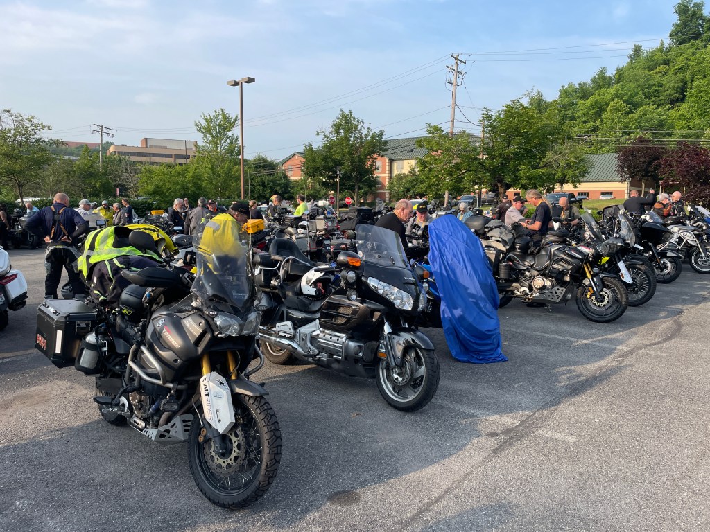 As the registration schedule had been modified, I could set out the same day, take the Eurotunnel train and arrive in time at the rally HQ hotel in Coventry. The registration and technical check was quickly done and I prepared my laptop and the sat nav in my hotel room. A quick shower and I was ready for the dinner and the subsequent rider meeting. This year, a small German-speaking contingent was present: last year’s runner-up Arjen, Rainer and Marcus. Hans-Jörg was missing, as his bike was stolen in front of his hotel in Maidstone the night before. In the year before, two bikes were stolen as well during the rally and earlier as well. The organisers had ramped up security: we learned that three guys would be looking over our bikes this night. If the thieves would dare to show up, they would face some ex-military, ex-special forces lads. NOT a good idea. The crowd was very thankful and appreciated this a lot.
