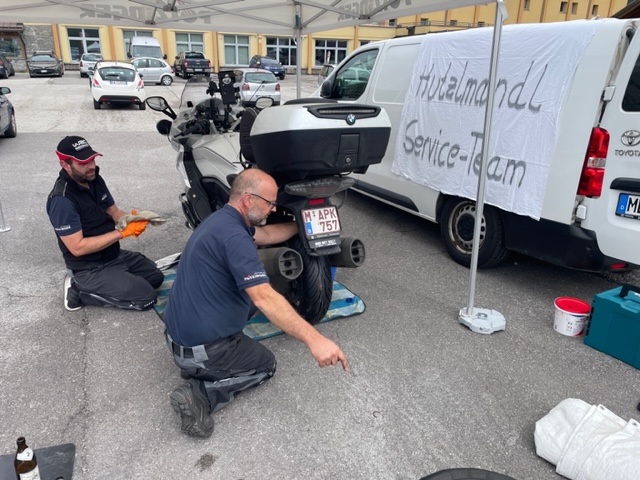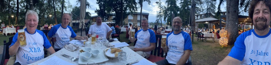 In August it was finally time to take my raucous, 680cc ‘yippie ki yay’ XBR to the Alpes again. I organised another ‘XBR Alpentour’ for the old friends. It was the 30th anniversary of the first one in 1994; I had organised one every August until 2014. Since then, it has only happened two times that we brought the old group together. So it was a special occasion again. But first I had planned a pre-tour with Gernot and Johannes as a warm-up. We met in Tegernsee and rode through the Bavarian Pre-Alps and over the TImmelsjoch to our base for the next days, the Hotel Penegal on top of the Penegal mountain. From there, you have spectacular views over the Adige valley and the Italian Alps. The next day, Johannes and I did a tour over the Stelvio Pass, Umbrail and Ofen Pass to do a lunch break in Livigno. We returned back to the hotel over the Gavia and Tonale passes. The following day, Gernot joined us and we rode to the Croce Domini Pass and back home again. We were warmed up now and left the Penegal the next day to meet the other chaps in a nice, traditional restaurant near Sterzing for lunch. Spectacular food and good company, the secret of the XBR Alpentours. Apart from the great roads, of course. The next three days, we visited all the great places in the area – Southern Dolomites, Pasubio area and Lake Garda area with the Monte Baldo area – bringing back good old memories and making new ones. A great time together!