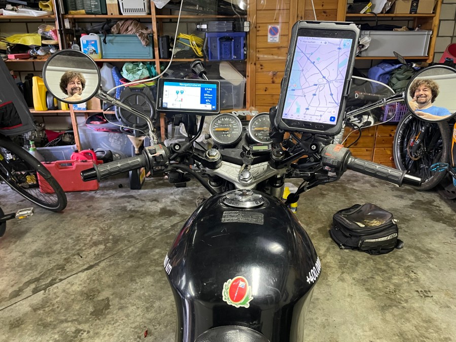 After 3000 km, I returned well and the bike is in an excellent state. I can’t say this of some electric gadgets. The Garmins…annoying, as usual. The SRC…will be replaced by a deluxe headset from AKE. But overall, this first test ride was successful. In three days, the next test is about to start….