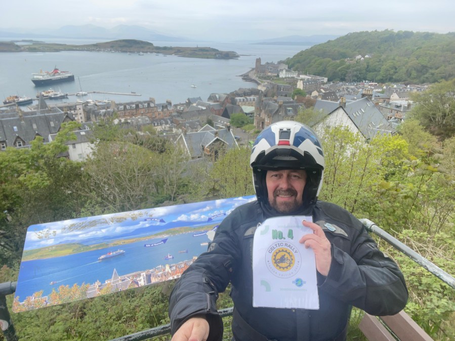 The next opportunity to make up for this error came already two weeks later. I had decided to join a new rally offered in Europe double point the Celtic rally, organised by the IBA Ireland. This first rally was called the tartan edition and took place in Scotland. This was an opportunity I could not miss. I always love to ride in Scotland and then 12 hours of rallying that was not to be missed. I took the ferry from Rotterdam to Hull overnight and rode up to the Scottish East Coast the next day, a smooth ride without any pressure. I joined some other participants in the Rally Hotel in Dundee and early the next morning we set off for our 12 hour plan that we had designed to ride the days before. We all set off from an iconic point and I still had not really fully understood all the rally rules as it turned out later. Nevertheless I followed my plan and rode first through the lowlands and later up to the highlands all the way up to Inverness and then to the west coast open where I had to walk up to an old castle in Oban. I did enjoy the ride and was not aware that I had not fully understood the rally rules as I passed several locations that I had not considered eligible according to the rules, thereby giving away a big sum of points along the way. This was really a very nice ride even the weather was so-so, still a bit fresh as it was only beginning of May. I returned to the finish in the same hotel and learned only at the scoring of my massive misunderstanding! Did I cock up again? However, I was lucky enough to have sufficient points to come on first place and to be the first winner of this new Irish rally. The next day I rode back through Scotland and England and arrived in Belgium with a pretty much worn tyre.