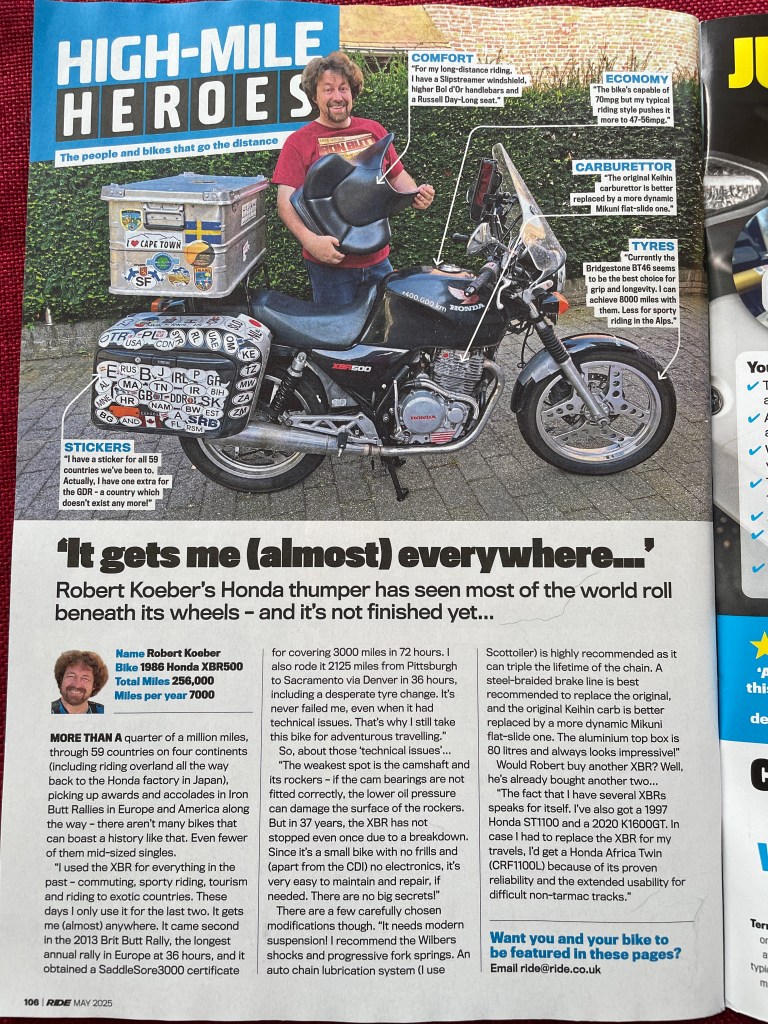 In autumn, two articles were published about me and my tours and bikes. First, a whole one-pager in the prestigious ‘Süddeutsche Zeitung’ and somewhat later a paragraph in an article about high mileage bikes in Bike, the largest motorcycle magazine in Britain. Very nice indeed. Links are in the top menu of this page.