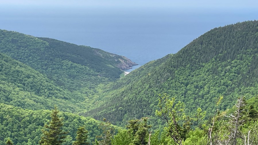 After the breakfast, I set off at 9:30 to do one circle of the famous Cabot Trail, the ring road around the Northern tip of Cape Breton. The owner gave me some good tips that should turn out to be as good ones later. I hoped that the horrible weather forecast would not materialise – and luckily it didn’t, I had no rain the whole day, just mostly sunny weather. I followed the advice to go counter-clockwise and did not regret it. I followed the Cabot Trail to the north and enjoyed some view on the coast.