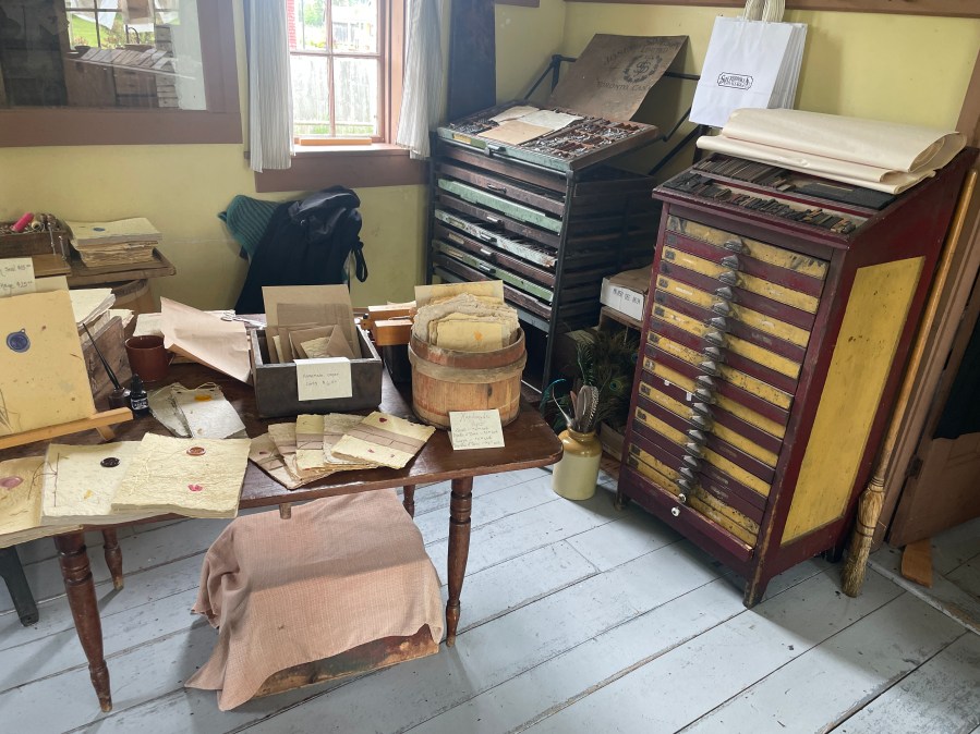 At the next house, I visited a printing office and paper maker. I had another chat with the printing lady and some Austrian tourists when I overheard them. She printed recipes with types on a machine from the 1880s and showed me how to make hand-made paper from leftovers.