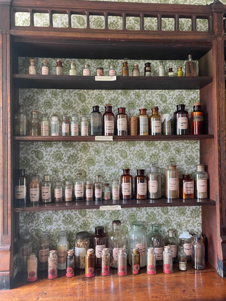My next stop was at a drug store with a series of products, herbs an “OTC” products from the late 19th century. I passed by a potter and ended up at a woodturner and chair maker. When I told him about my father and his chairs, another tourist chipped in that her father from Germany had been also a carpenter. She even knew the carpenter university in Rosenheim. What a funny encounter!