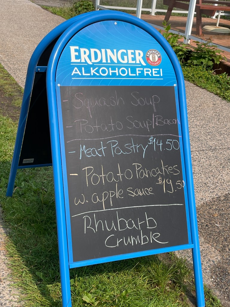Back at the hotel the new daily menu was too tempting to not choose the full monty (aka the full menu). A surprisingly good bottle of Nova Scotia Pinot Noir accompanied the delicious dishes. I had entertaining chats with Holger the owner. I had browsed where to go to tomorrow. My first idea was to go to Prince Edward Island – until I checked the weather forecast. This made me change my mind – I will go for a long ride past Halifax tomorrow, stopping in the town of Lunenburg.