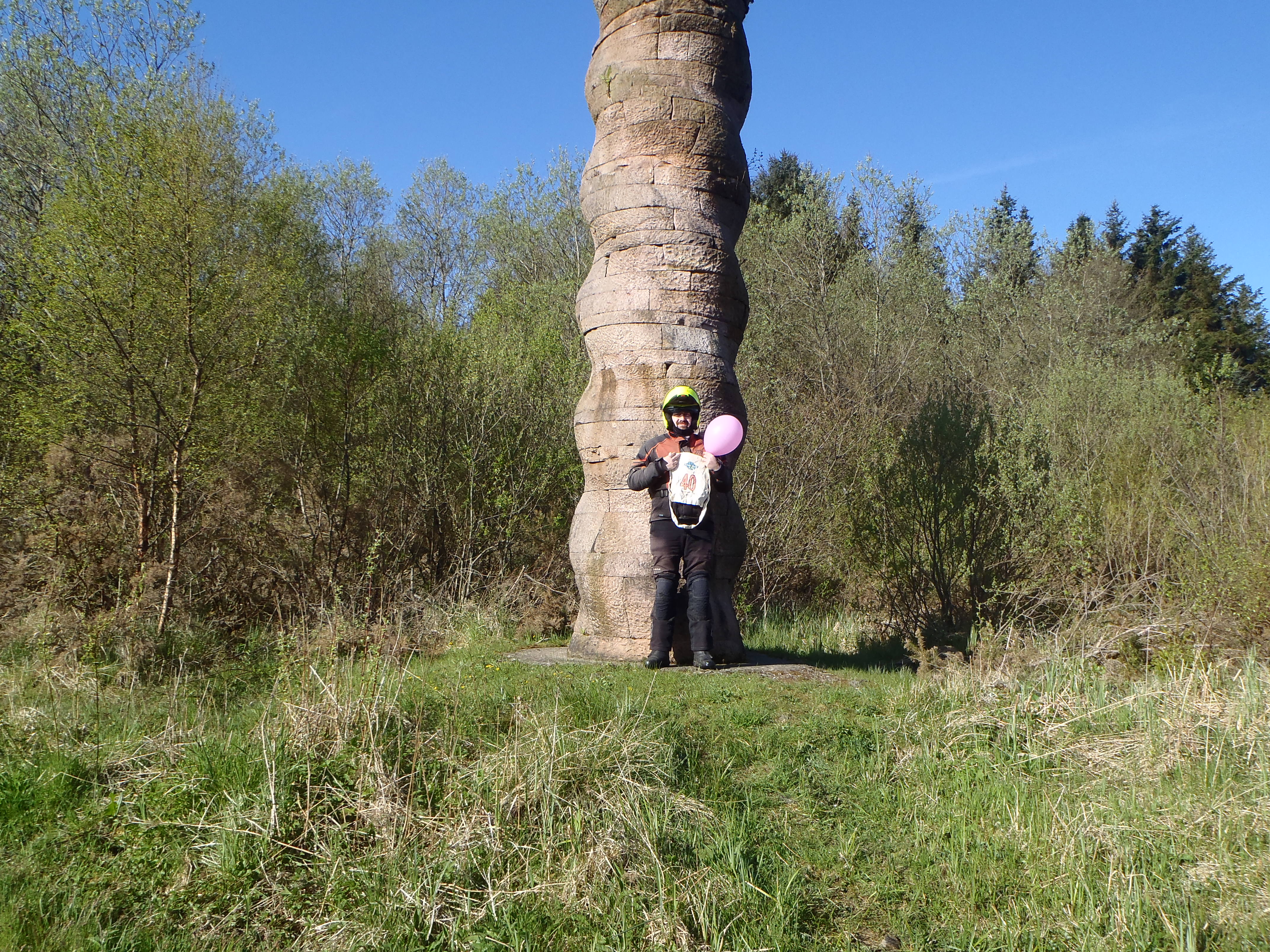 Another big 2300 points plus the 3400 points combo bonus for visiting both railway stations. Good! Now let’s get to the south. Back on the A9, the weather improved and when passing Edinburgh, I was riding in sunshine at chilly temperatures. Things were going well and I was reflecting which locations I could add to my plan. I went through the Borders and on my way to the next bonus point, and suddenly I was faced with an oncoming Rob Roalfe. What? Where did he come from?? Again I started to question my routing. I simply could not comprehend what his strategy was. Soon I got to the lake in the Kielder Forest Park where the next bonus point was. As there was nobody around, I decided against a walk to the Kielder column and simply rode there.